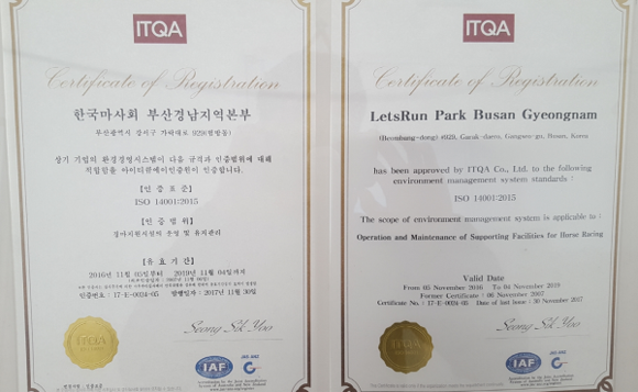 한편 렛츠런파크 부경은 지난 2007년 최초로 환경경영시스템 인증을 획득한 이후 지속적으로 매해 인증심사를 받아왔다.