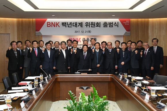 BNK금융그룹은 그룹의 미래 비전과 새로운 청사진을 제시할 'BNK백년대계 위원회' 출범식을 21일 부산은행 본점에서 개최했다.