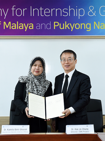 부경대학교 대학인문역량강화(CORE)사업단(단장 정해조)과 말레이시아 말라야대학(총장 압둘 라힘 하쉼)은 20일 부경대에서 국제교류 및 해외인턴십 프로그램 운영을 위한 협약(MOU)을 체결했다.