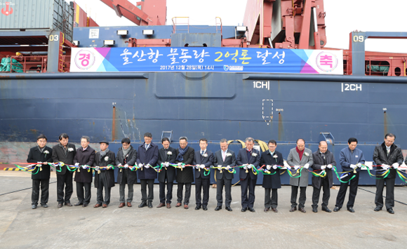 강종열 사장은 인사말을 통해 “장기화되고 있는 해운경기 불황과 항만간의 경쟁이 갈수록 치열해지고 있는 가운데 물동량 2억톤의 달성은 울산항으로서 매우 의미가 깊다”며 “앞으로 양적성장과 함께 질적성장을 도모할 수 있도록 울산항을 LNG를 포함한 에너지허브로 사업범위를 확대하는 한편, 현실화되고 있는 북극물류의 거점화도 내실 있게 추진해 나가겠다”고 밝혔다.
