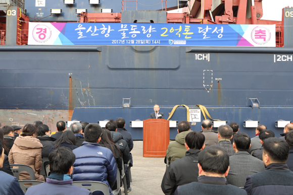 UPA는 이를 기념해 28일 오후 울산본항 6부두에서 항만업계 종사자들 70여명이 참석한 가운데 2억톤 달성을 기념하는 행사를 가졌다.