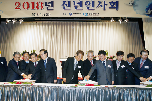 이날 행사에는 조성제 부산상의 회장, 서병수 부산시장, 김석준 부산시교육감, 부산지역 국회의원, 각급 기관장, 언론사 및 기업체 대표 등 500여명이 참석해 2018년 새해 인사를 나누며 지역사회의 안녕과 번영을 기원했다.