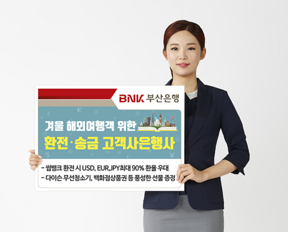 BNK부산은행은 겨울시즌 해외여행 고객을 위한 '환전·송금 고객사은행사'를 2월 28일까지 실시한다고 9일 밝혔다.