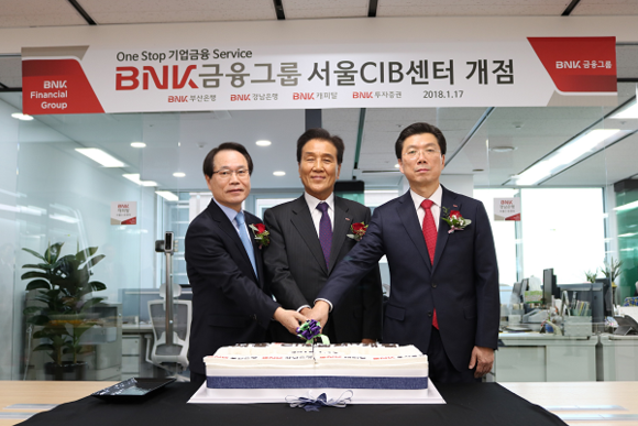 BNK금융그룹이 17일 오전 여의도 BNK투자증권 서울영업부에 '서울 CIB(기업투자금융:Corporate & Investment Banking) 센터'를 개점했다.