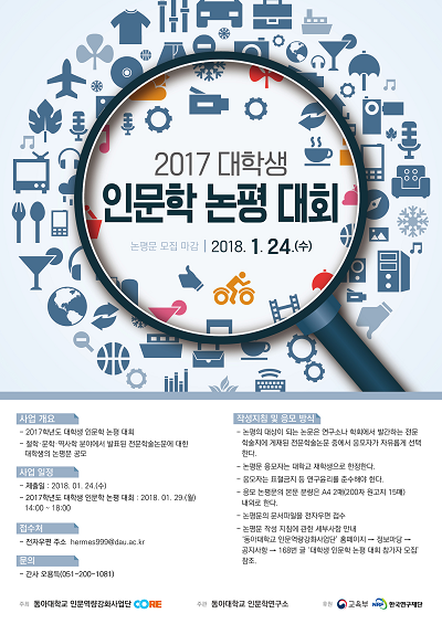 동아대학교는 인문역량강화사업단이 주최하고 인문학연구소가 주관하는 '대학생 인문학 논평 대회'를 개최한다고 19일 밝혔다.