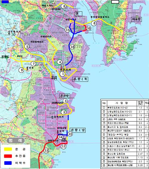 한편 항만배후도로 건설 사업은 총 16개 사업(완료 9건, 시행중 3건, 미착수 4건)이다.