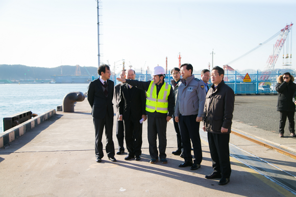 ▲조현배 부산경찰청장 등 지휘부가 평창 동계올림픽을 앞둔 24일 부산신항을 방문해 태러대비태세 등을 점검하고 있다. (사진제공=부산경찰)
