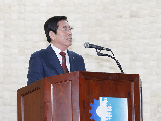 ▲허용도 태웅 회장이 차기 부산상의 회장 단독 후보로 임하는 포부를 밝히고 있다. (사진제공=부산상의)