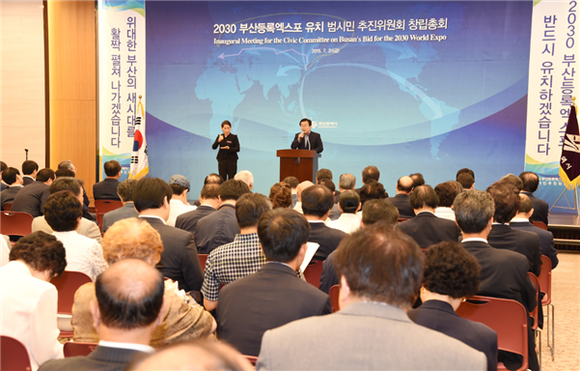 부산시는 오는 29일 오후 2시 강서실내체육관에서 '2030 부산등록엑스포 유치 시민 결의대회'를 개최한다고 26일 밝혔다.