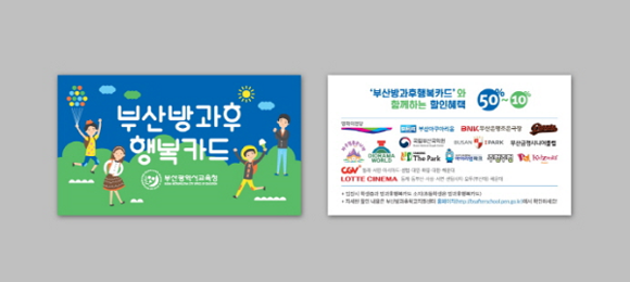 부산방과후행복카드는 학생들이 실제 요금보다 저렴한 비용으로 문화예술과 스포츠 등 다양한 체험활동을 할 수 있도록 입장료를 할인해 주는 등 다양한 혜택을 주는 카드다.