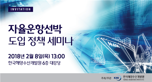 제4차 산업혁명에 따라 최근 국내·외에서 주목받고 있는 자율운항선박(MASS)의 도입 및 활용 방안을 논의하기 위한 '자율운항선박 도입을 위한 정책 세미나'가 오는 8일 한국해양수산개발원(KMI) 6층 대강당에서 열린다.