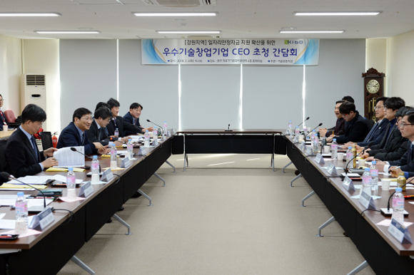 간담회에는 강원지역 우수기술창업기업 대표 10명과 기보 담당 이사, 부서장, 지역본부장과 영업점장 등 20여명이 함께 참석하여 현장의 목소리를 공유했다.