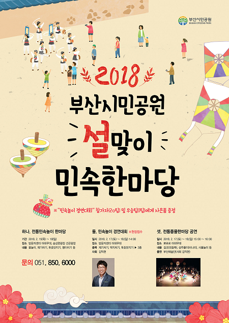 부산시설공단은 오는 15일부터 18일까지 설 연휴기간 부산시민공원 방문자센터 등 공원 일원에서 설맞이 전통민속한마당을 펼친다고 8일 밝혔다.