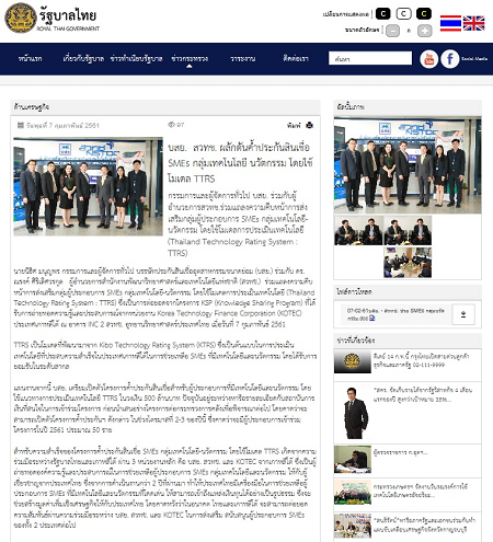 ▲태국정부 현지 금융상품에 기보의 기술평가시스템 적용 관련 태국 현지 기사.