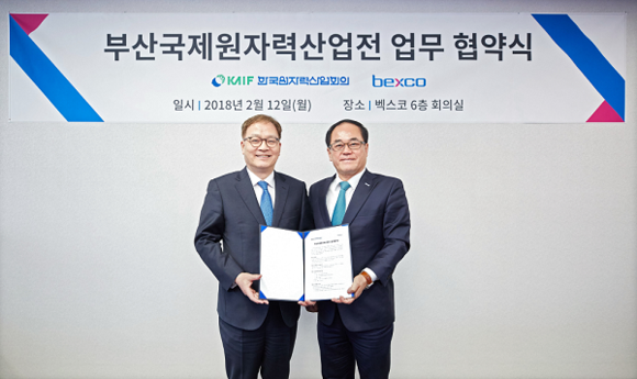 부산 벡스코는 12일 (사)한국원자력산업회의와 '2018 부산국제원자력산업전' 개최 관련 업무협약을 체결했다.