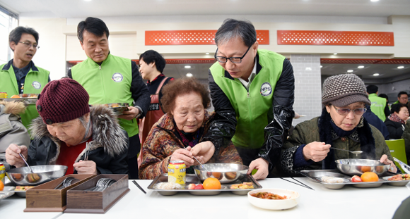 지난해 11월 7일 이사장 취임 후 처음으로 부산을 찾은 김성주 이사장과 류승락 부산본부장을 비롯한 직원 20명은 직접 준비한 떡국을 어르신들에게 손수 담아드리고 무병장수를 기원하는 선물을 전달했다.