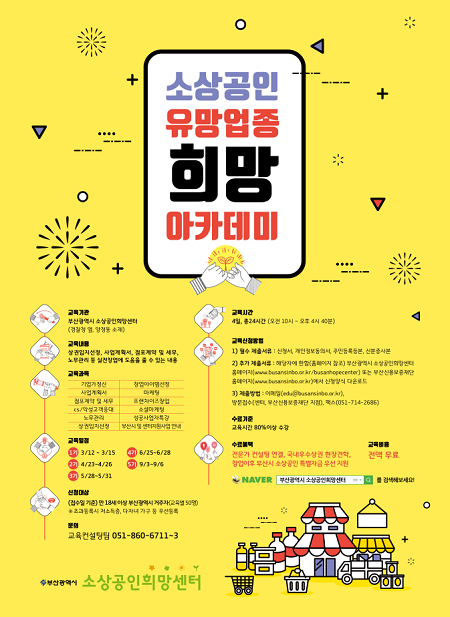 지난해 소상공인 및 예비창업자 등 166명이 아카데미를 수료했으며, 만족도가 85%에 달할 정도로 호응이 컸다. 이에, 올해는 1회 추가해 총 5회(3~6월, 9월)에 걸쳐 250명을 대상으로 '부산시 소상공인희망센터'에서 교육을 실시한다.