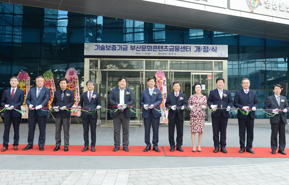 기술보증기금은 문화콘텐츠 지원 인프라를 부산, 영남지역으로 확산하기 위해 23일 부산 영상산업센터 내에 '부산문화콘텐츠금융센터'를 신설하고 개점행사를 가졌다.