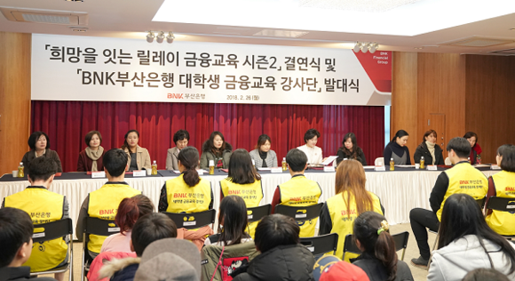 부산은행의 '희망을 잇는 릴레이 금융교육'은 지역아동센터와 협약을 맺고 사회취약계층 및 다문화가정 등의 지역 초·중·고 학생에게 금융교육을 제공하는 사회공헌 프로그램이다.