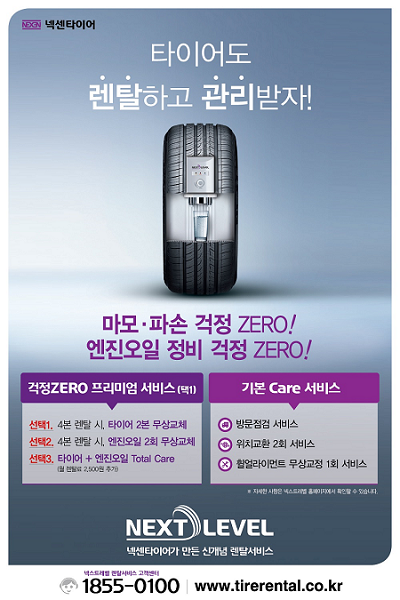넥센타이어가 업계 최초 타이어 렌탈서비스인 '넥스트레벨'의 새로운 혜택을 선보인다고 1일 밝혔다.