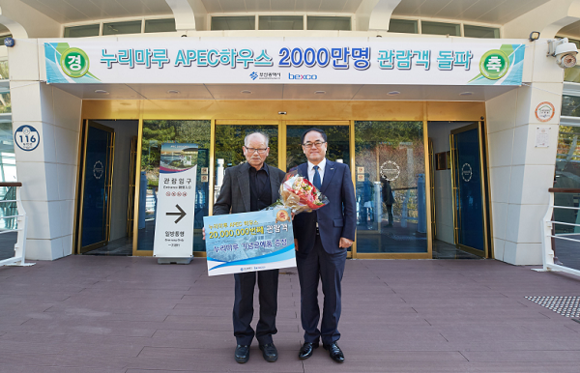 벡스코는 2005년 아시아・태평양경제협력체(APEC) 정상회담장으로 문을 연 부산 해운대 동백섬 '누리마루 APEC하우스'가 12년 3개월만인 6일 누적 방문객 2천만명을 돌파했다고 밝혔다.