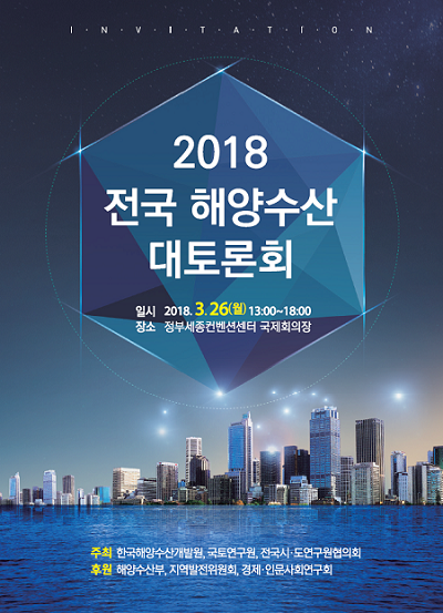 한국해양수산개발원(KMI)은 오는 26일 정부세종컨벤션센터 국제회의장에서 해양수산부 후원으로 전국 12개 광역시·도가 참여하는 '2018 전국 해양수산 대토론회'를 개최한다고 21일 밝혔다.