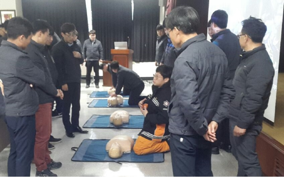 또한, 사고 발생 시 인명피해를 최소화 하기 위해 심폐소생술과 자동심장충격기 사용 방법에 대한 교육도 시행했다.