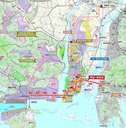 '도시철도 하단~녹산선 건설사업'은 도시철도 1호선 하단역에서 명지를 지나 녹산공단까지 총연장 14.4km의 경량전철로 총사업비가 1조 477억원 가량의 예산이 소요될 것으로 추산되며, 국비와 시비가 6대 4로 투입될 예정이다.