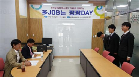 ▲'多 JOB는 정장 DAY' 실전모의면접 모습. (사진=부산시)
