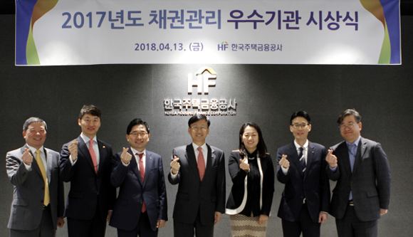 한국주택금융공사는 13일 공사의 장기·고정금리 주택담보대출인 보금자리론과 적격대출 등을 취급하는 금융기관 중 국민·기업·농협·신한·KEB하나은행 등 5개사를 '2017년도 채권관리 우수기관'으로 선정, 시상했다.