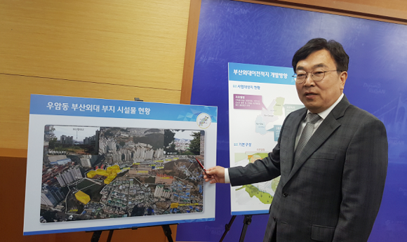 서병수 부산시장은 16일 오전 부산시청 브리핑룸에서 기자회견을 갖고 “우암동 옛 부산외대 부지 13만㎡는 2014년 2월 부산외대가 남산동으로 캠퍼스를 이전한 뒤 쇠퇴한 주변 상권 회복과 지역경제 활성화에 대한 인근 주민들의 요구가 늘고 있다”며 “시에서도 북항 그랜드 마스터 플랜과 연계한 도시 경쟁력 강화 차원에서 장기간 방치돼 있는 부산외대 옛 캠퍼스 부지의 적극적 활용방안 마련이 시급하다는 인식하에 이러한 계획을 마련하게 됐다”고 추진 배경을 설명했다.