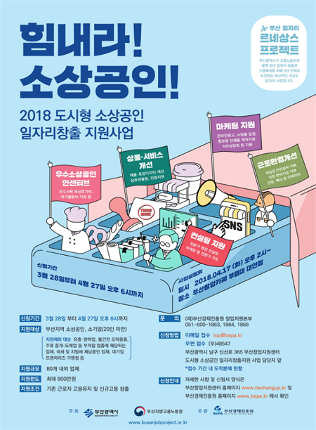 부산시가 올해도 소상공인들의 경쟁력 강화와 일자리 창출을 위해 '도시형 소상공인 일자리창출 지원' 사업을 추진한다고 16일 밝혔다.