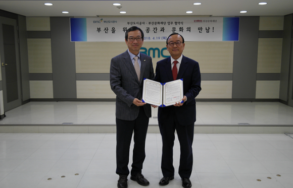 ▲오른쪽부터 부산문화재단 유종목 대표, 부산도시공사 김영환 사장. (사진=부산문화재단)