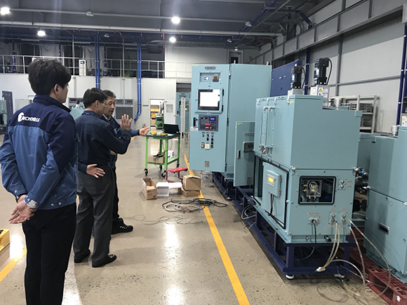 ▲남부발전 이제선 경영컨설턴트가 테크로스를 방문해 현장실태조사를 하고 있다. (사진=남부발전)