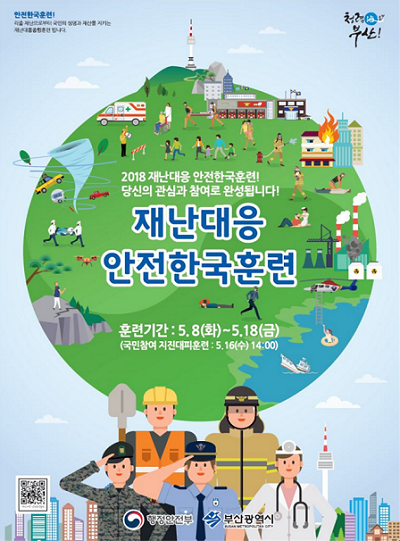 부산시는 각종 재난 발생 시 시민의 생명과 재산을 보호할 수 있도록 재난대응 역량을 향상시키기 위해 중앙부처, 자치구·군, 유관기관·단체와 합동으로 '2018 재난대응 안전한국훈련'을 오는 8일부터 18일까지 실시한다고 밝혔다.