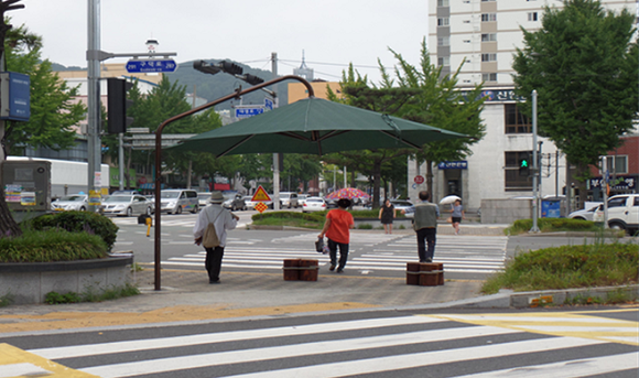 이에 따라 부산시의 '폭염방지 그늘막 설치·관리 지침'에서 여름철 폭염대책기간을 5월부터 9월까지로 설정하고, 보행자가 많고 대기시간이 긴 횡단보도 주변과 가로수 및 건축물이 없어 그늘이 필요한 곳을 선정해 그늘막 설치를 확대 추진하는 한편, 도시경관을 반영한 디자인과 주변 환경에 적합한 설치형태를 제시하고 있다.