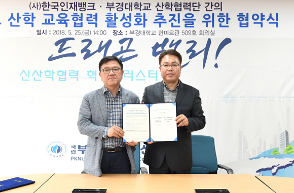 부경대학교 산학협력단과 (사)한국인재뱅크는 25일 오후 부경대 한미르관 5층 회의실에서 선도 산학 교육협력 활성화 추진을 위한 협약을 체결했다.