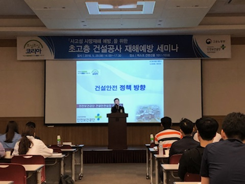 이번 세미나는 최근 부산 해운대구 소재 초고층 건설공사 현장에서 클라이밍 시스템(Climbing System) 작업대가 낙하하는 대형사고(사망 4명, 부상 4명)가 발생하는 등 고층 건설현장에서 대형사고와 사망재해가 지속적으로 발생되고 있어, 고층 건설공사 재해예방 정보공유와 유사 사고예방을 위해 실시됐다.