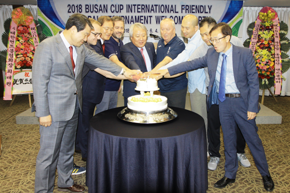 앞서 대회를 하루 앞둔 29일 오후 부산롯데호텔에서 부산컵 국제친선 핸드볼대회에 참가하는 6개국팀과 내외빈 관계자들이 한자리에 모였다.