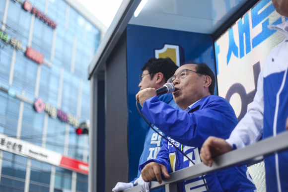 오후 1시부터 오 후보는 남구의 △용호동 △대연동 △수영동 팔도시장에서 시민들과 일일이 악수를 하는 등 소중한 한 표를 호소했다.