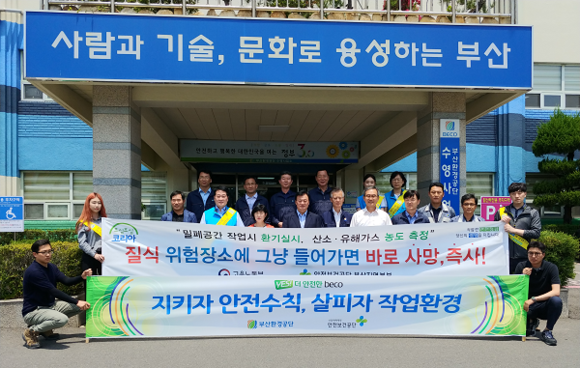 이번 행사는 안전보건공단과 부산환경공단 수영사업소와 합동으로 밀폐공간의 가스농도 측정 및 급·배기에 대한 환기 실시 여부 등 주의사항에 대한 확인으로 진행됐다.