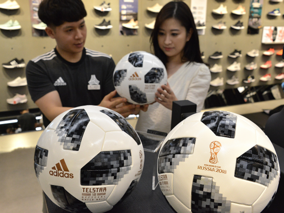 롯데백화점 부산본점 5층 아디다스 스포츠 매장에서는 2018년 러시아 월드컵을 앞두고 러시아 월드컵 공인구인 '텔스타 18'을 선보이고 있다. (사진=롯데백화점)