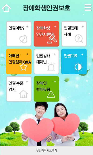 ▲부산교육청 '장애학생 인권보호 홍보' 앱 메인화면. (사진=부산교육청)