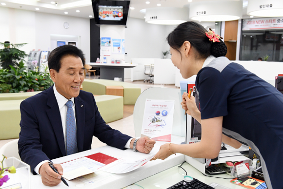 ▲BNK금융그룹 김지완 회장은 19일 평화로운 남북관계를 기원하며 BNK부산은행 본점 영업부를 방문해 BNK자산운용의 2세대 통일펀드인 'BNK브레이브뉴코리아 펀드'에 가입했다. (사진=BNK금융)