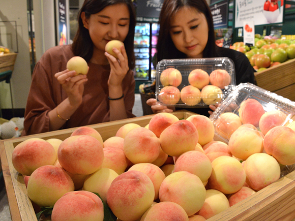 롯데백화점 부산본점 지하 2층 식품관에서는 경북 청도에서 생산한 여름 제철 과일인 복숭아를 출시해 선보이고 있다. (사진=롯데백화점)