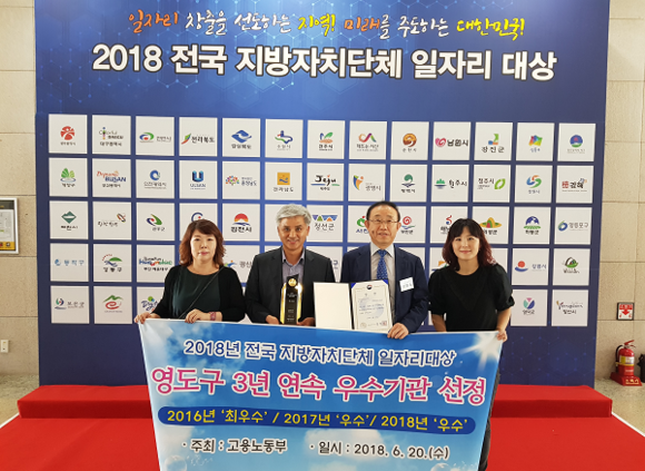 영도구는 이번 수상으로 3년 연속 일자리대상 우수기관에 선정되는 영예와 인센티브 9천만원을 받는다.