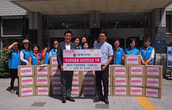 자생의료재단과 해운대자생한방병원은 25일 부산 해운대구청에 저소득층 여성 청소년들을 위한 위생용품을 담은 '엔젤박스'를 전달했다.