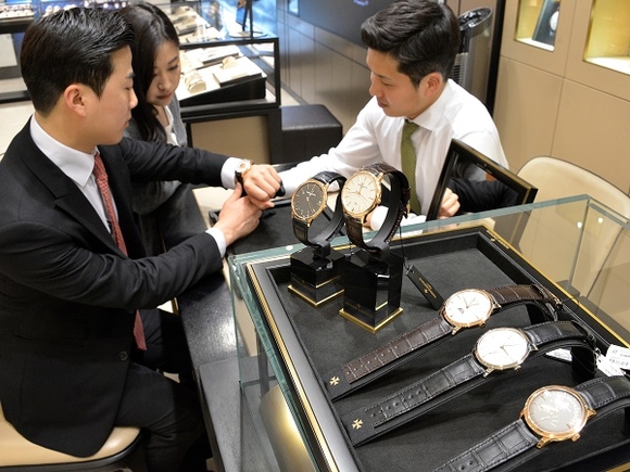 ▲롯데백화점 부산본점 1층 명품시계 매장에서 고객이 시계를 살펴보고 있는 모습. (사진=롯데백화점)