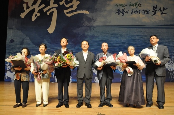 부산지방보훈청은 15일 오전 10시 부산시민회관 대극장에서 열린 제73주년 광복절 경축식에서 △건국훈장 애족장에 故이미동의 자녀 이송자(77), 故안수갑의 자녀 안정자(86), 故남정성의 자녀 남영화(68) △건국포장에 故최은동의 손자녀 최위석(90) △대통령표창에 故조진규의 손자 조민제(65), 故김성덕의 자녀 김기생(85)씨에게 광복절 계기 독립유공자 포상을 전수했다.