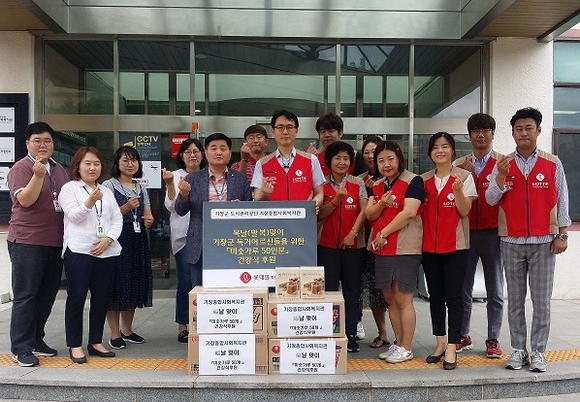 롯데몰 동부산점 샤롯데 봉사단은 16일 말복을 맞아 기장군 도시 관리공단 기장종합복지관을 방문해 지역 소외 어르신을 위한 간식 지원 및 도시락 배달 봉사활동을 실시했다. (사진=롯데백화점)